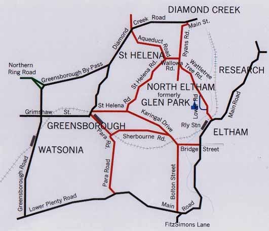 From the West: Take the Western Ring Road to Greensborough Bypass and turn left, Cross the roundabout into Diamond Creek Road. At Aqueduct Road street lights turn right. Cross the roundabout at St. Helena into Wallowa Road, turn right at the lights into Ryans Road. Lower Road is first right past the roundabout.